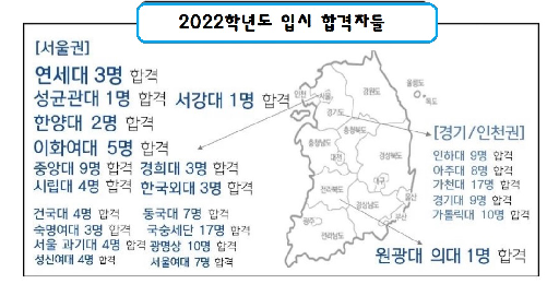 - 연간 250명 이상 고교생 대상 컨설팅 및 설명회 진행